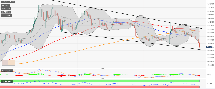 Let's face it. Bitcoin (BTC) is aiming to finish the third consecutive week with losses. The first digital peaked at $13,868 at the end of June and has been losing ground ever since. Currently, it is nearly 50% down from the recent top. While the sell-off stopped at a psychological $7,000, the coin is vulnerable to further losses amid the bearish technical setup.