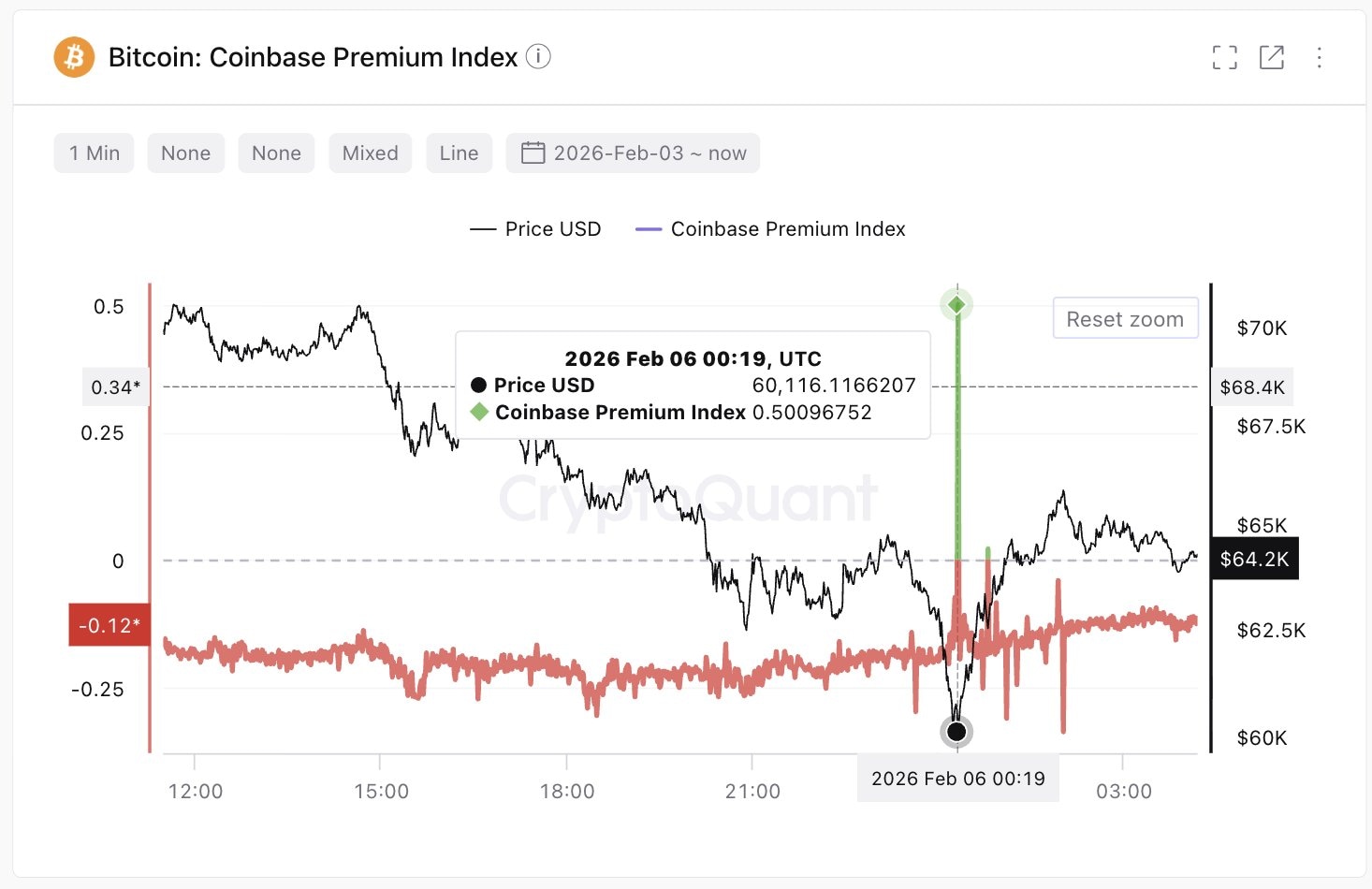 Young showed that CryptoQuant’s Coinbase Premium Index spiked positive as BTC slipped toward $60,000 during early Friday. This positive spike indicates that large-wallet investors (whales) have accumulated BTC during this dip, which could signal a short-term recovery within the ongoing downward trend.