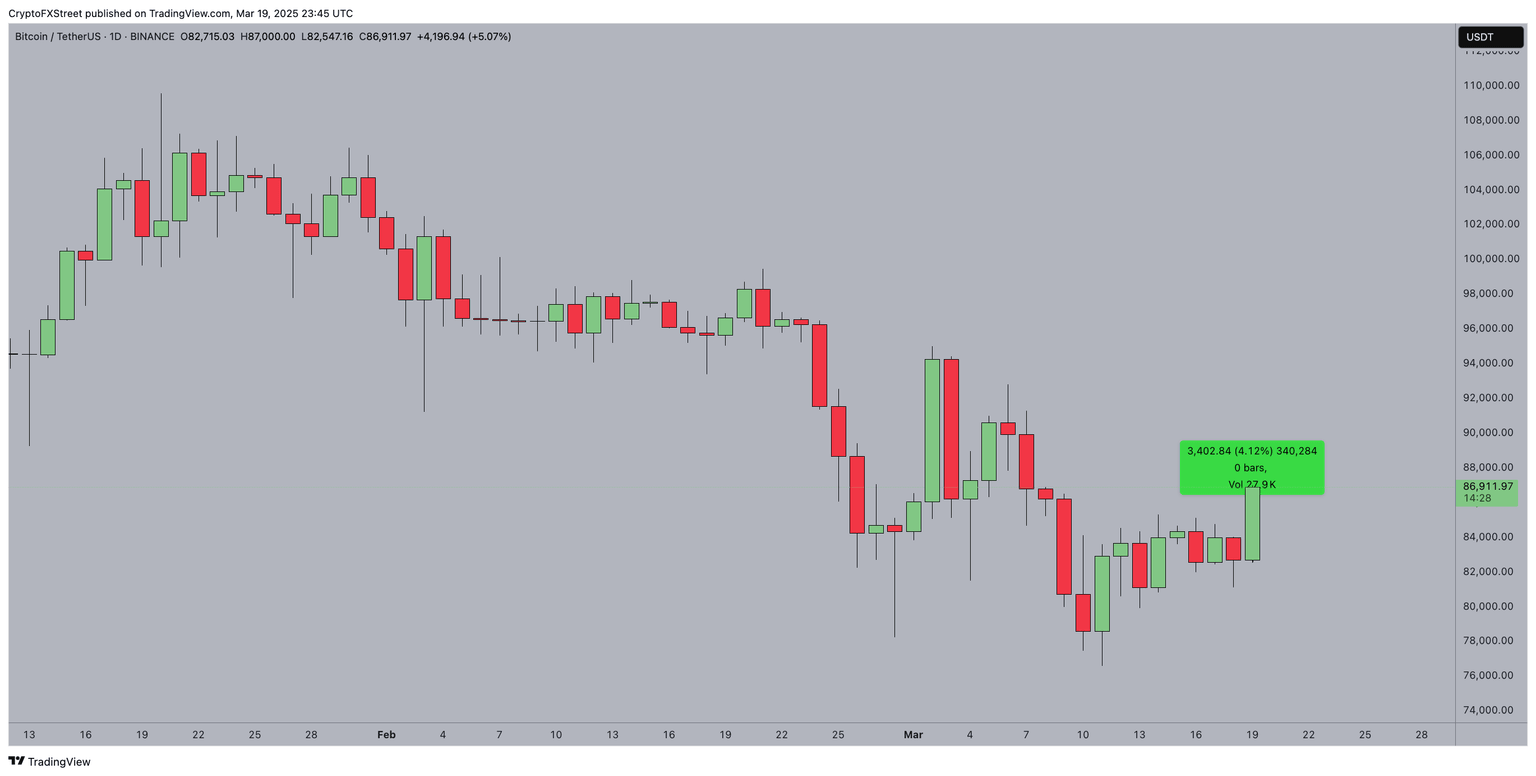 Bitcoin surged 4% on Wednesday, climbing to a 10-day high of $85,900 as the US Fed rate decision macroeconomic conditions and positive sentiment from SEC dropping charges against Ripple both provided dual catalysts for a market-wide rally.