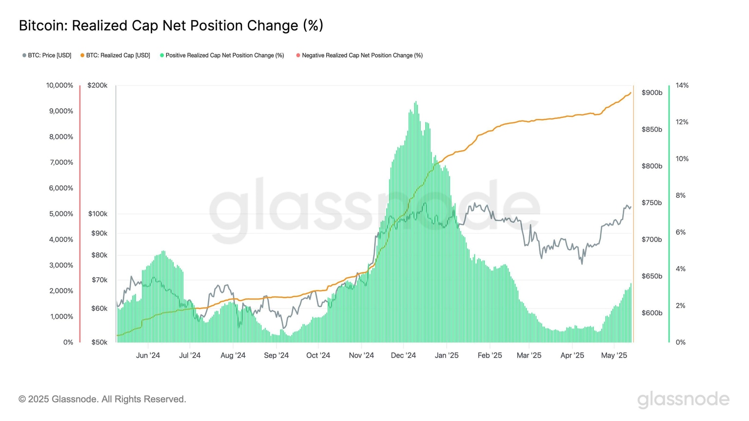 BTC Realized Cap Net Position Change. Source: Glassnode