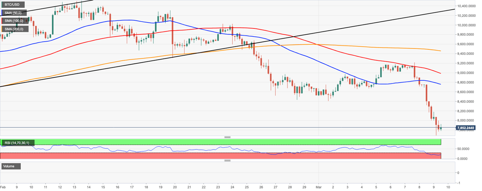 Bitcoin has recovered from the intraday low of $7,689, but the upside momentum is nowhere to be seen. At the time of writing, BTC/USD is hovering above $7,900, while $8,000 serves as initial critical resistance. Bitcoin's market dominance is registered at 63.5% as altcoins are also losing ground rapidly.