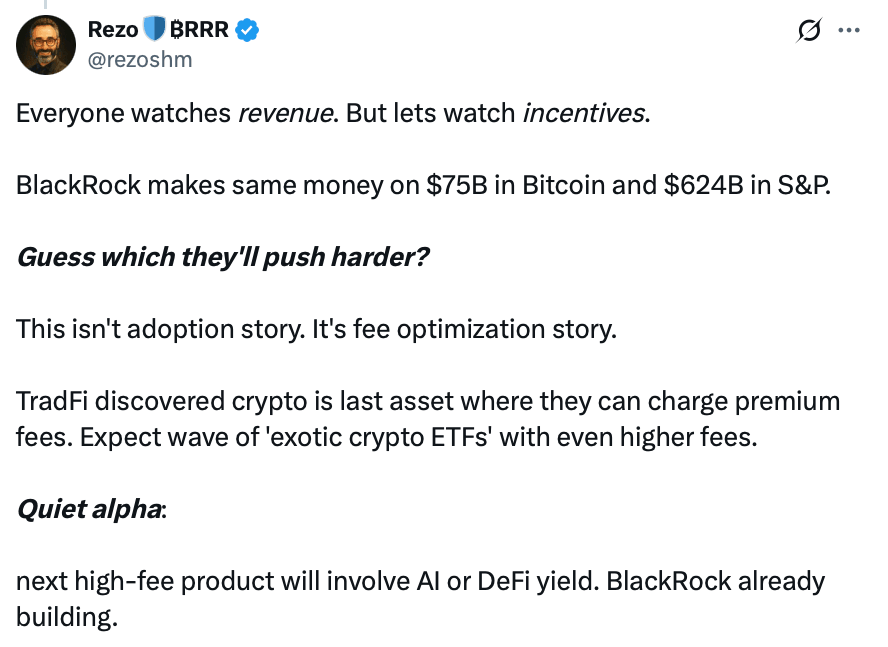 With an expense ratio of 0.25% and around $75 billion in assets under management (AUM), BlackRock’s iShares Bitcoin (BTC $109,373) ETF (IBIT) has generated $187.2 million in annual fees, approximately $100,000 more than its iShares Core S&P 500 ETF (IVV).