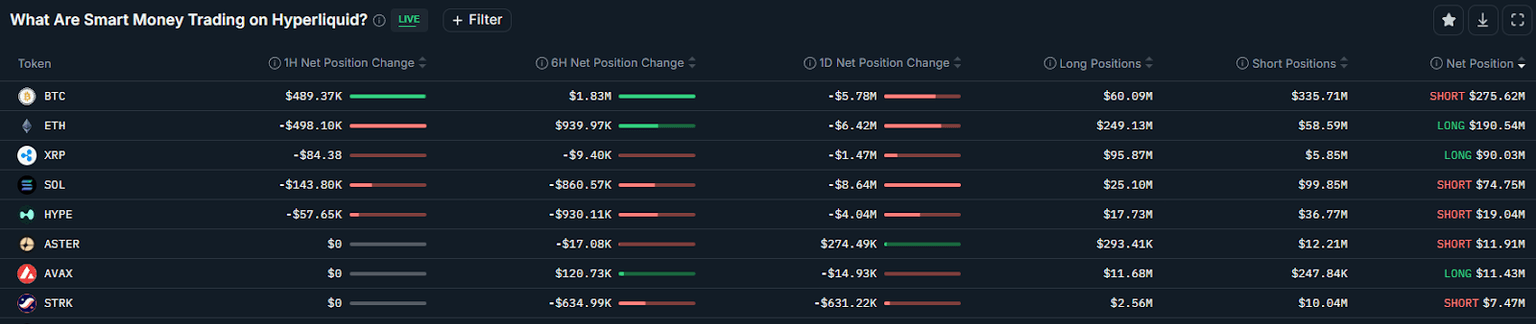 Smart money traders have added $5.7 million worth of cumulative short positions in the past 24 hours, signaling downside expectations, as this cohort was net short on Bitcoin for $275 million, according to Nansen.