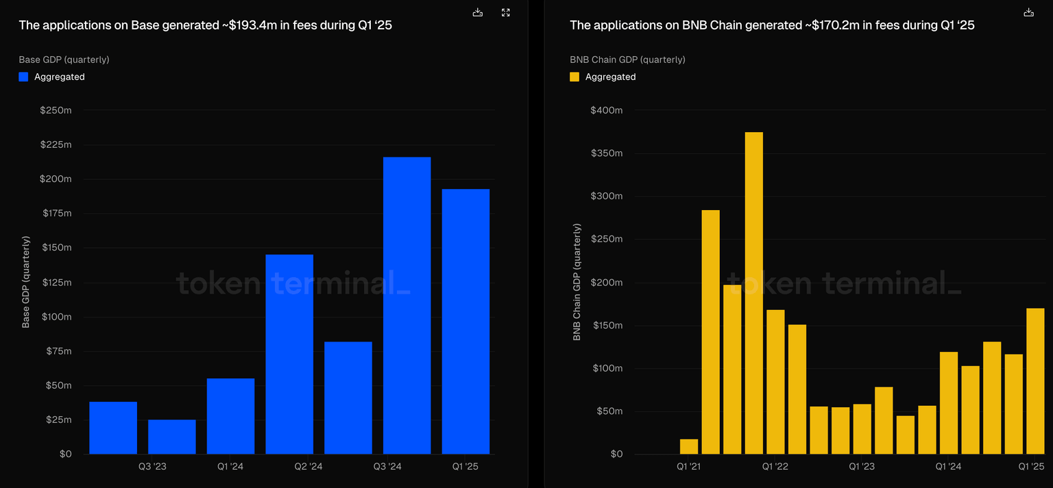 BSC Chain vs. Base Q1 2025 dApps fees | Source: Token Terminal