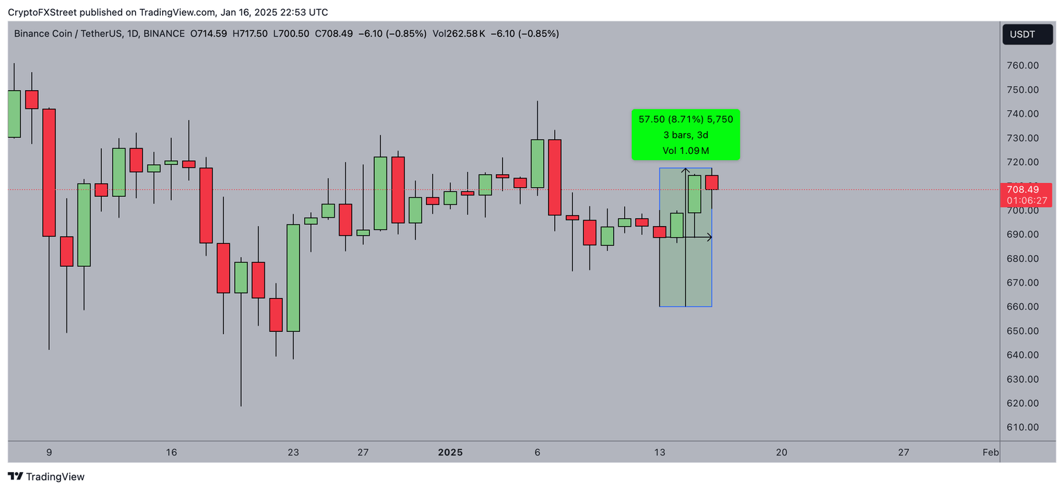 BNB price retest $715 as traders re-shuffle portfolio ahead of Trump’s inauguration