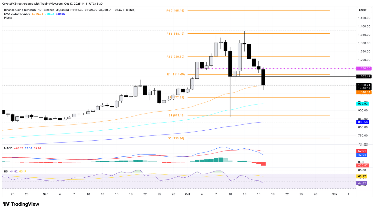 BNB is testing the 50-day Exponential Moving Average (EMA) at $1,046, and a decisive close below this dynamic support could threaten the $1,000 psychological support. The centre Pivot Point level at $977 could act as the next support.