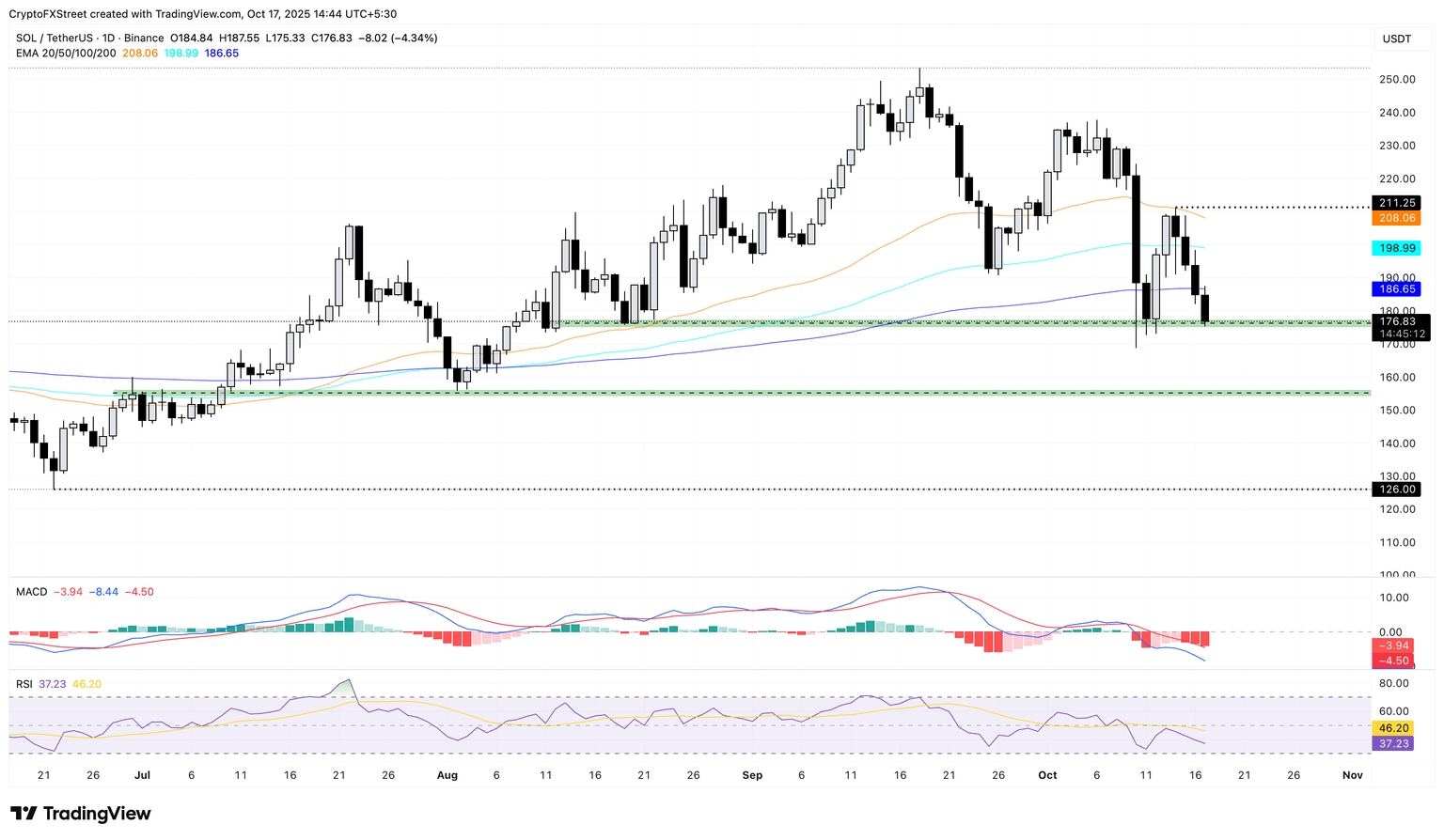 Similarly, Solana pressures the $175 support zone, which provided a bounce back last week, after crossing below its 200-day EMA at $186. If SOL drops below $175, the $155 support zone could be tested against rising selling pressure.