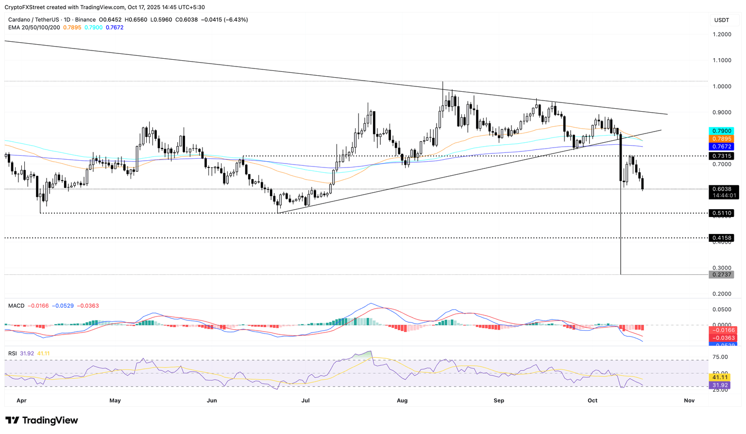 Technically, BNB, SOL, and ADA experience a significant surge in selling pressure as the Moving Average Convergence Divergence (MACD) extends the downward trend below the signal line. At the same time, the Relative Strength Index (RSI) in BNB drops below the halfway line to 44, indicating a loss in bullish momentum, while SOL and ADA experience the RSI approaching the oversold zone, reflecting heightened supply pressure.