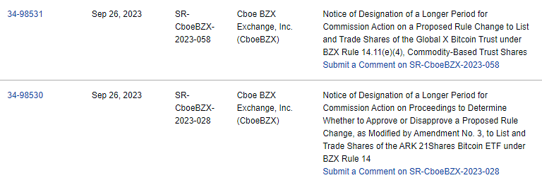 While the filing was due on September 29, the financial regulator came out three days prior, giving a "notice of designation of a longer period for commission action to determine whether to approve or disapprove a proposed rule change..."