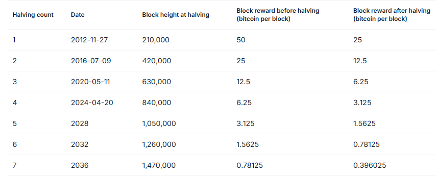 BTC halving dates