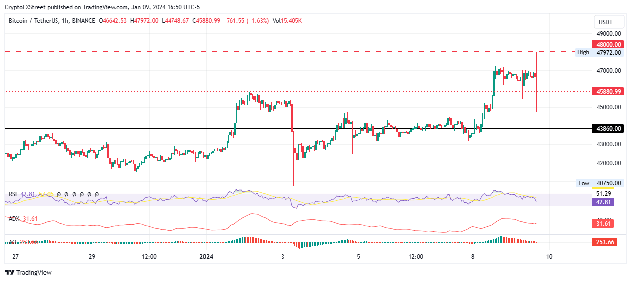 Bitcoin price dipped 5% in the immediate aftermath, to record an intra-day low of $44,748. The slump saw $33 million BTC longs liquidated alongside $24 million shorts.
