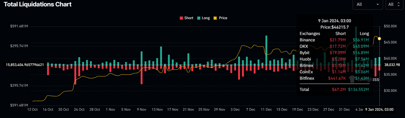 In the aftermath, over $210 million in total liquidations were recorded, comprising $135 million in long positions versus $67 million in shorts.