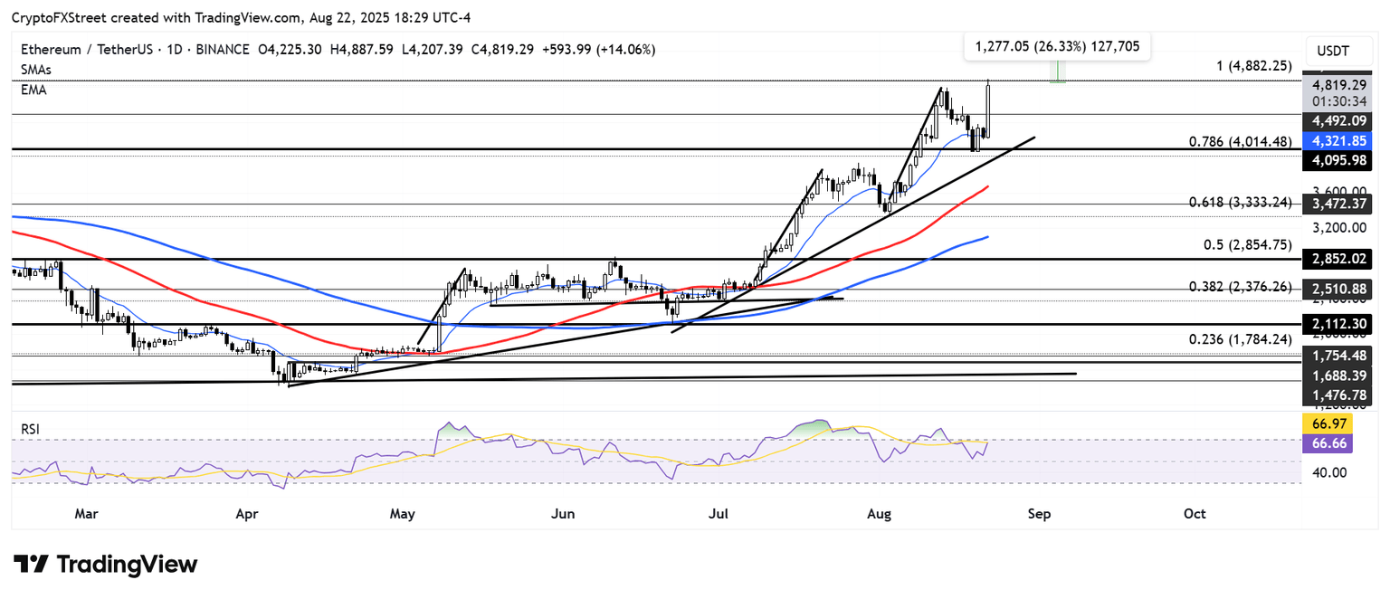 - Ethereum crossed the $4,800 mark for the first time in nearly four years after Fed Chair Powell's dovish remarks at Jackson Hole.