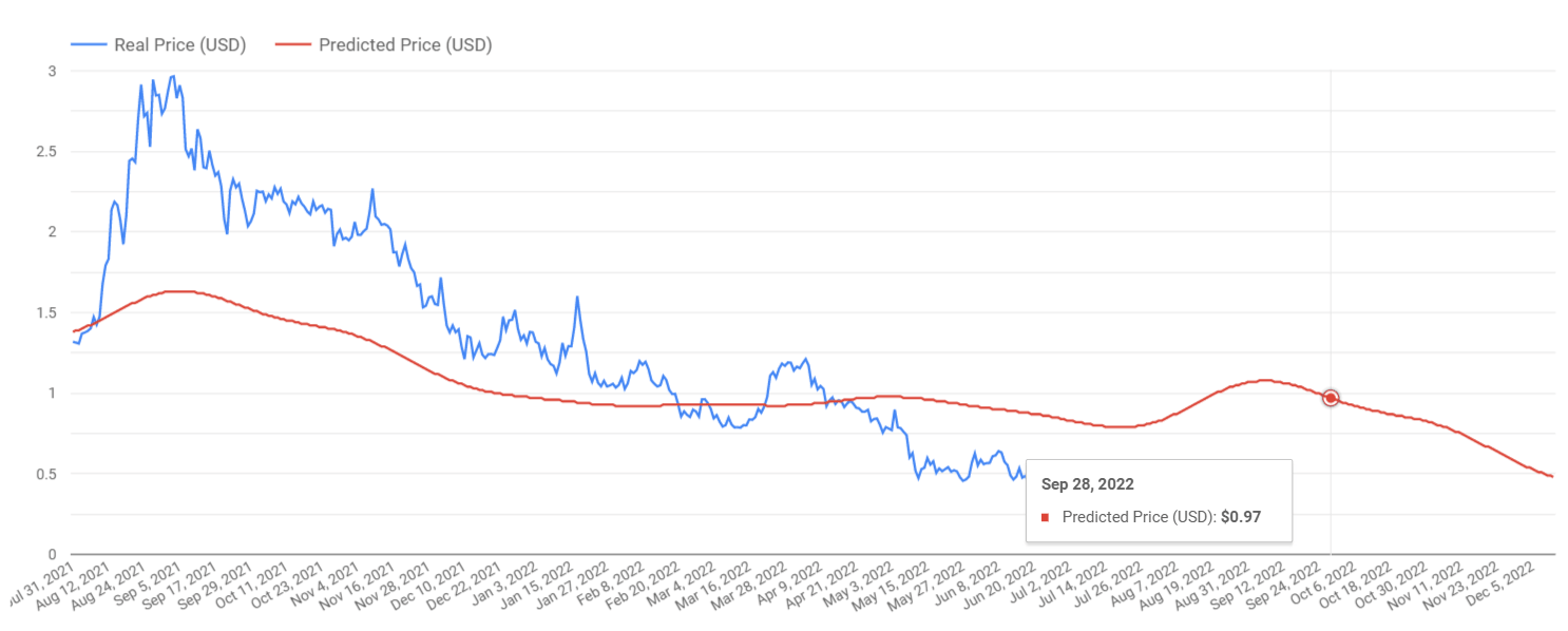 Cardano real and predicted price