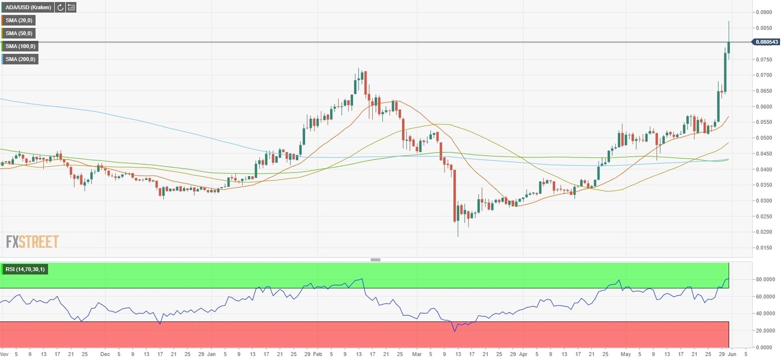 Cardano Price Analysis: ADA/USD gains 70% in May, looks to post highest monthly close since June 2019