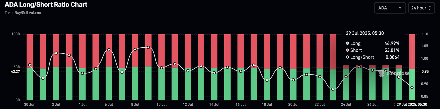 ADA long/short ratio. Source: Coinglass