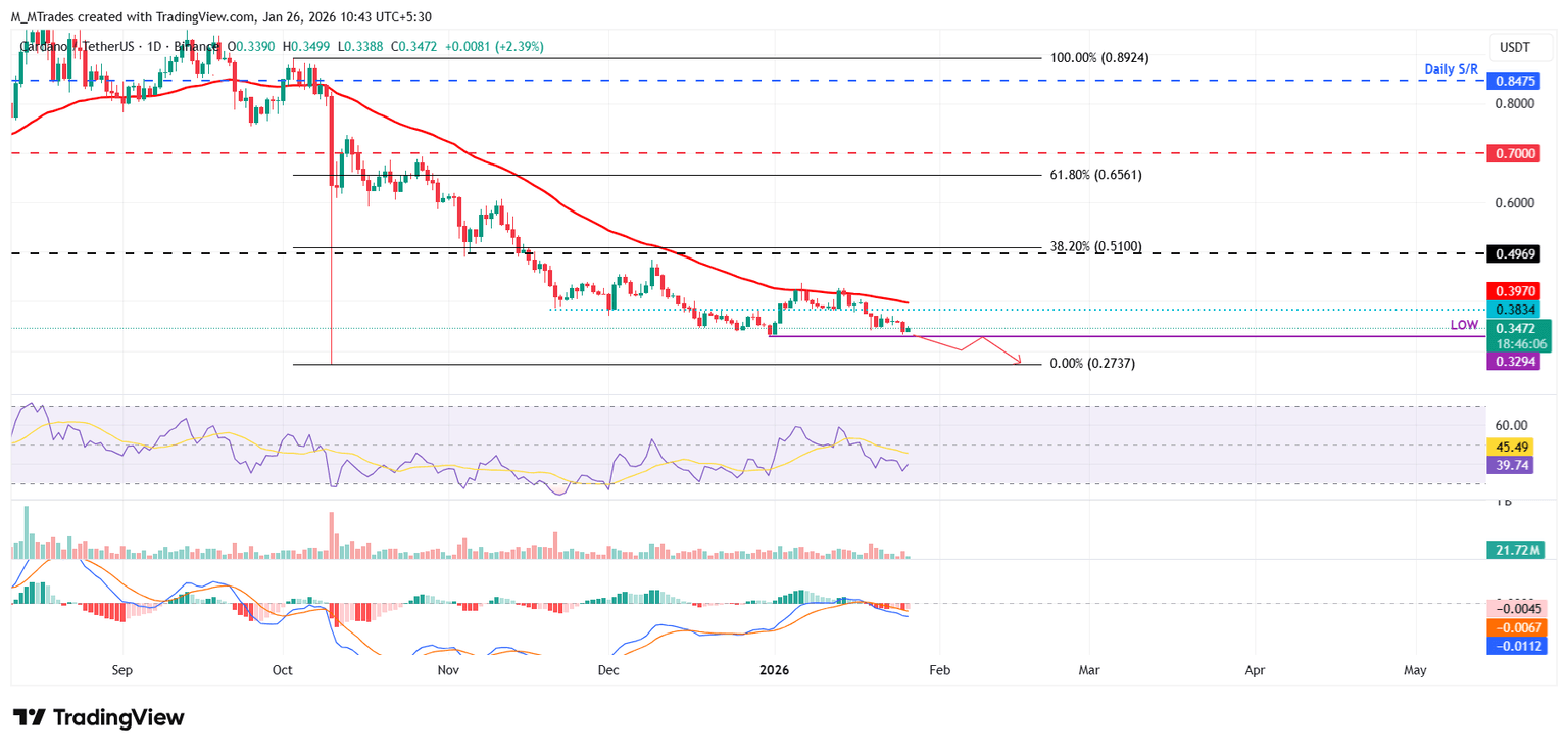 Cardano Price Forecast: ADA downside risks intensify, opening the door to $0.27