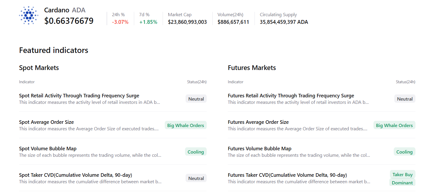Cardano (ADA) is trading around $0.66 at the time of writing on Tuesday, after being rejected from a key level the previous day. On-chain data shows whale accumulation rising, fueling optimism for a potential breakout. The technical outlook also supports a rally ahead, as momentum indicators signal a fading bearish trend.