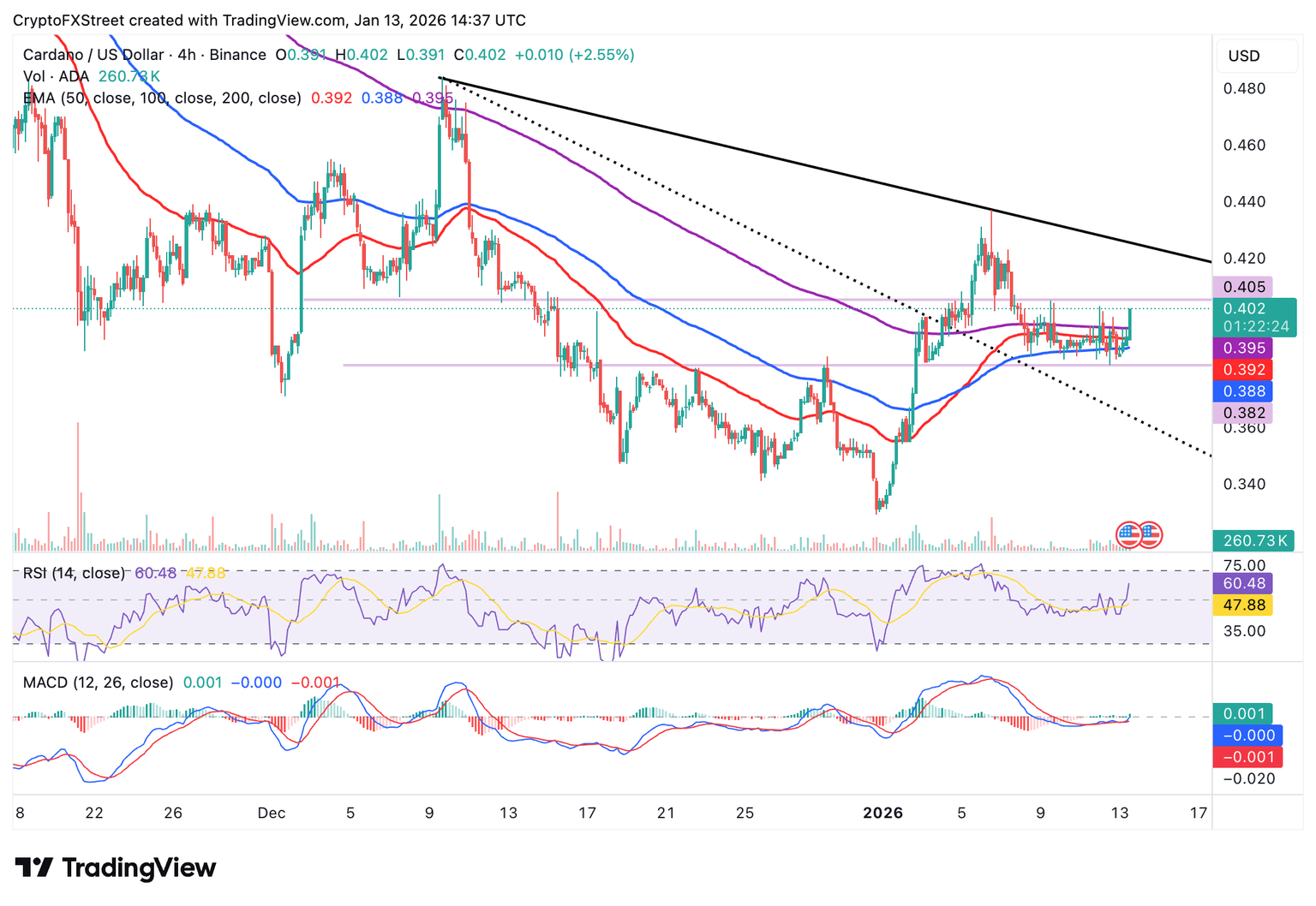 Cardano rises above $0.40 at the time of writing on Tuesday, supported by positive sentiment driven by softer US inflation. The token also holds above the 100 and 50 Exponential Moving Averages (EMAs), which are poised to provide short-term support around $0.39.