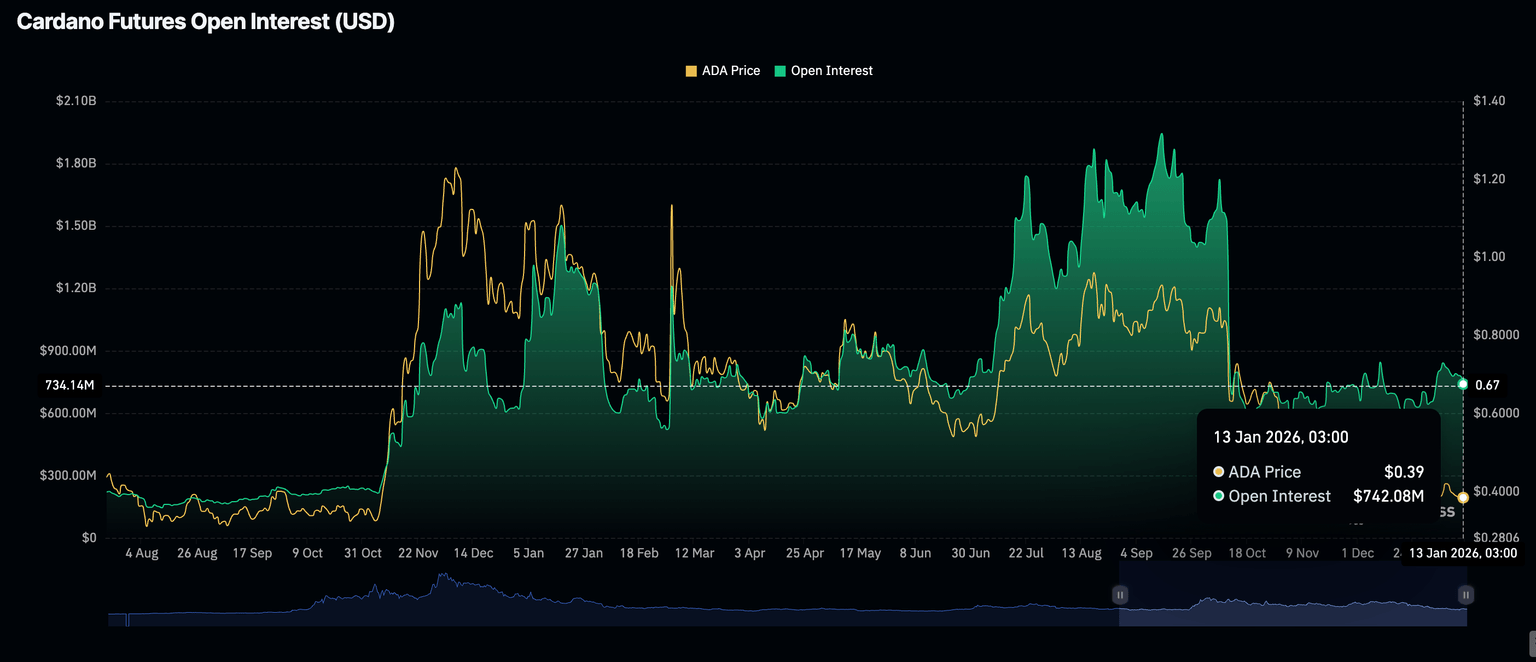 Meanwhile, retail interest in Cardano has remained significantly low since the October 10 flash crash, with recovery attempts quickly snuffed out. CoinGlass data shows futures Open Interest (OI) averaging $742 million on Tuesday, down from $780 million on Monday and $844 million on January 5.