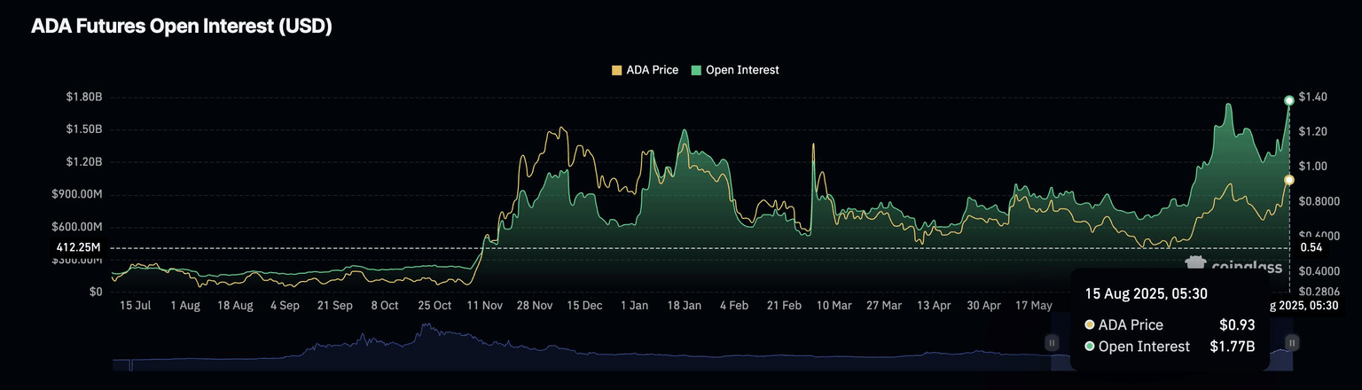 - The ADA Open Interest reaches a record high of $1.77 billion.