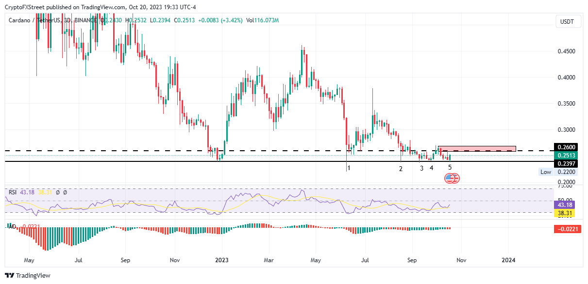 Cardano price needs to close above $0.26 to confirm resistance is broken