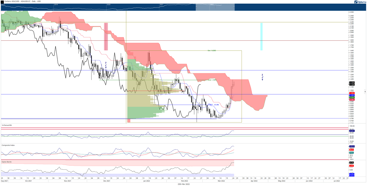 Cardano price may continue to spike higher to the bottom of the weekly Ichimoku Cloud, and Kijun-Sen shared the $1.60 value area.