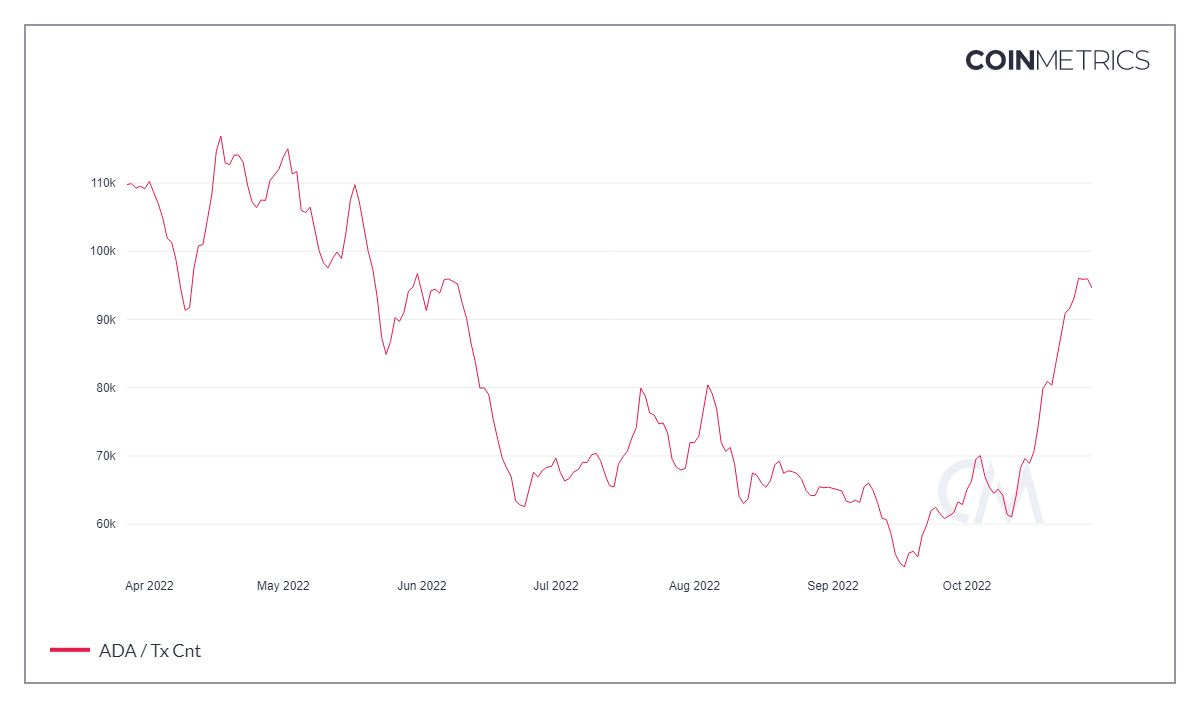 After months of minimal activity, ADA holders became active on the network again, which was evident in the number of active addresses. The figure rose from 56,000 to 72,000 in the span of two weeks.