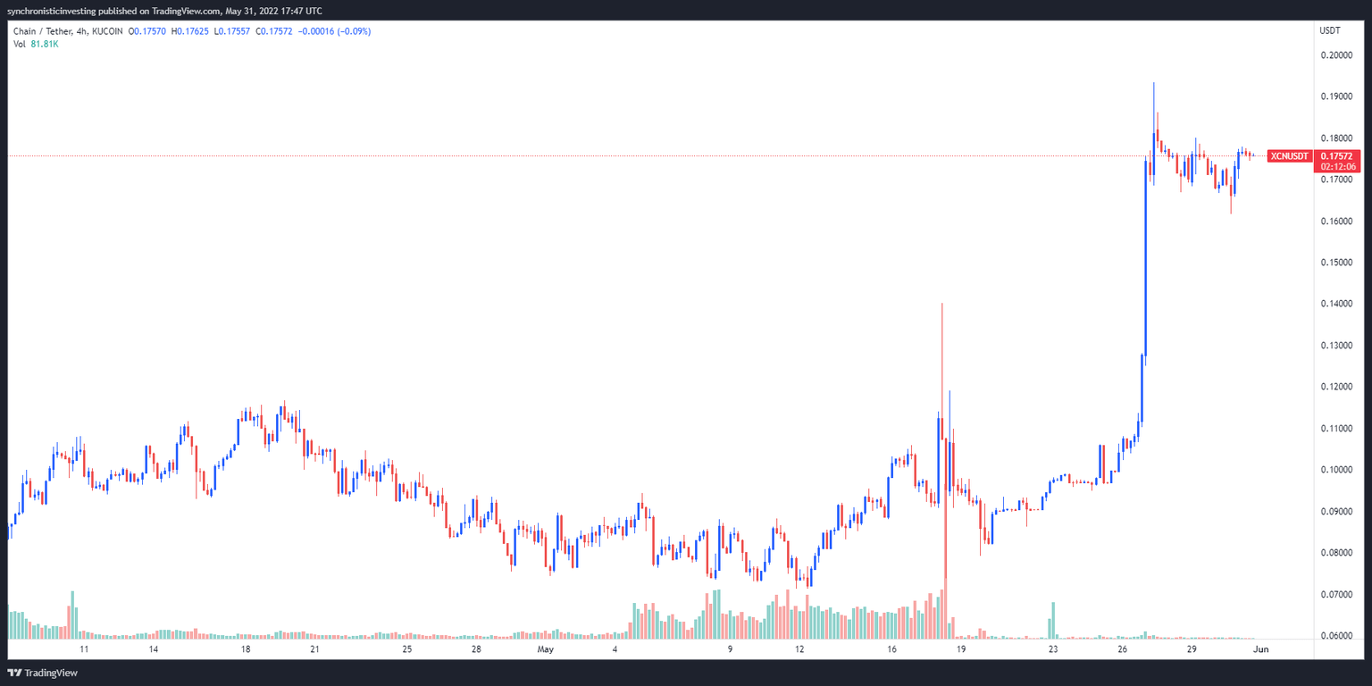 Chain (XCN) ignores the wider market downtrend by rallying 100%+ over the past month