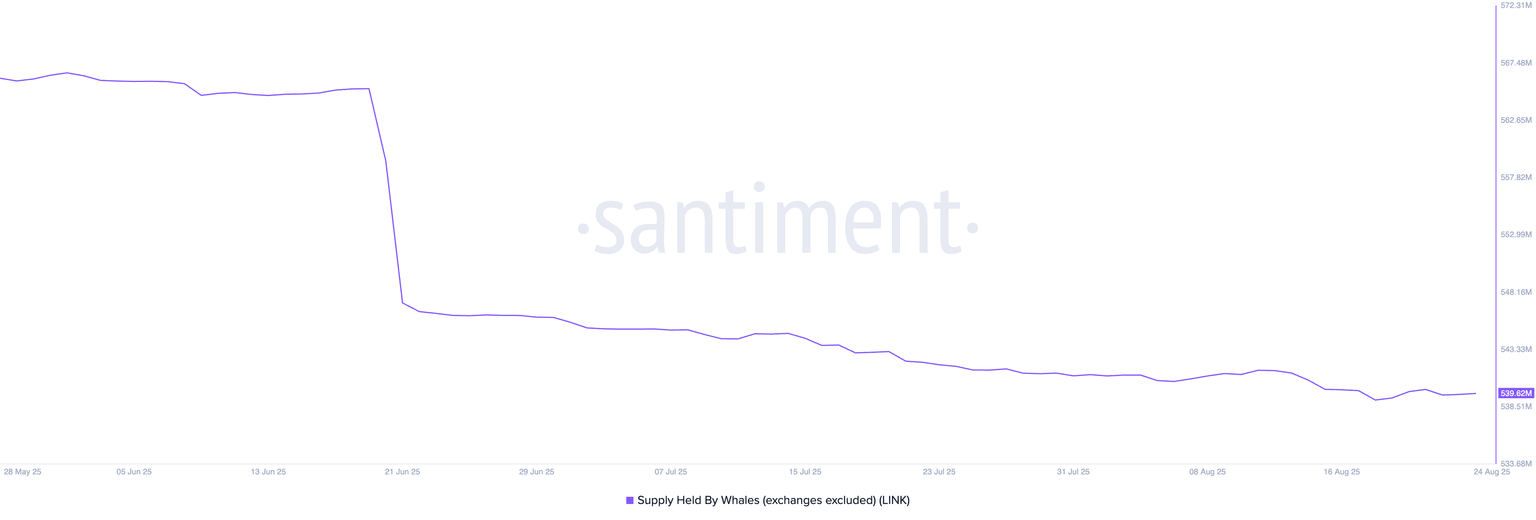 Still, the large-wallet investors, popularly known as whales, offload their holdings, reaching a record low of 539.07 million LINK tokens on August 18. At present, it stands at 539.62 million tokens.