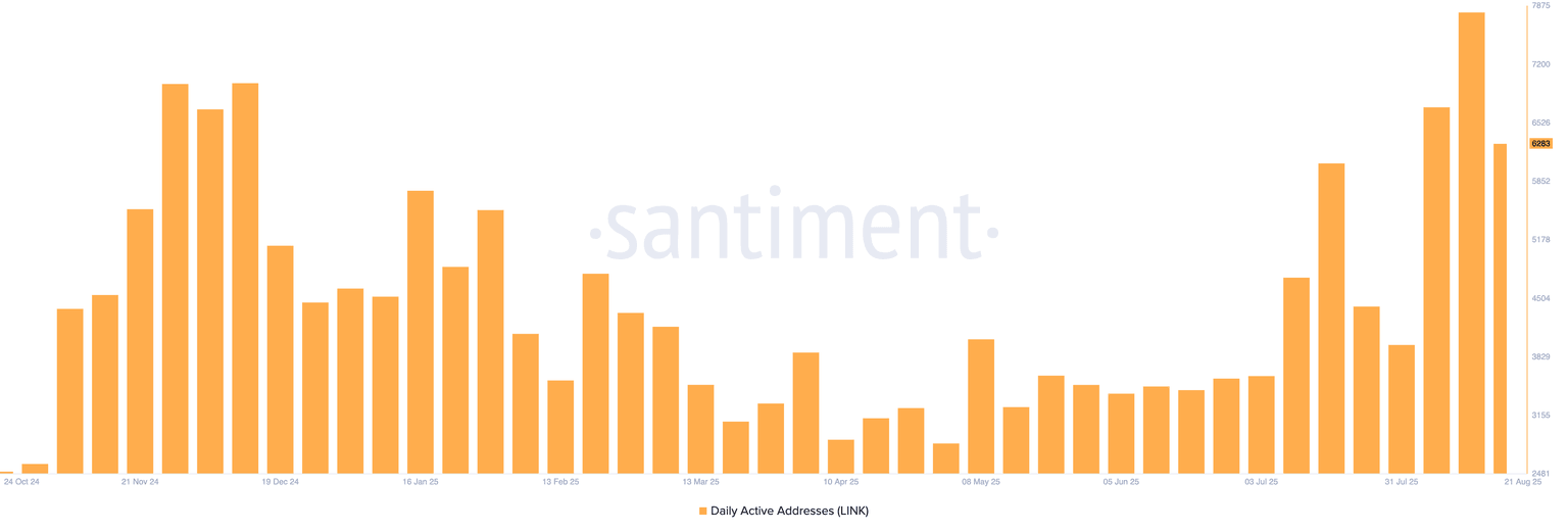 Amid the risk-on sentiment, network activity on Chainlink remains at higher levels compared to the slump from March to July. The daily active addresses maintained an average of 7,797 last week, the highest in 2025.