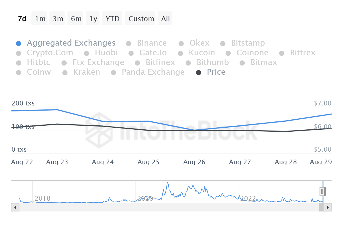 Data from IntoTheBlock shows that inflows into exchanges have been on a steady rise since August 26, suggesting intention to sell as investors sought to avoid the value drop.