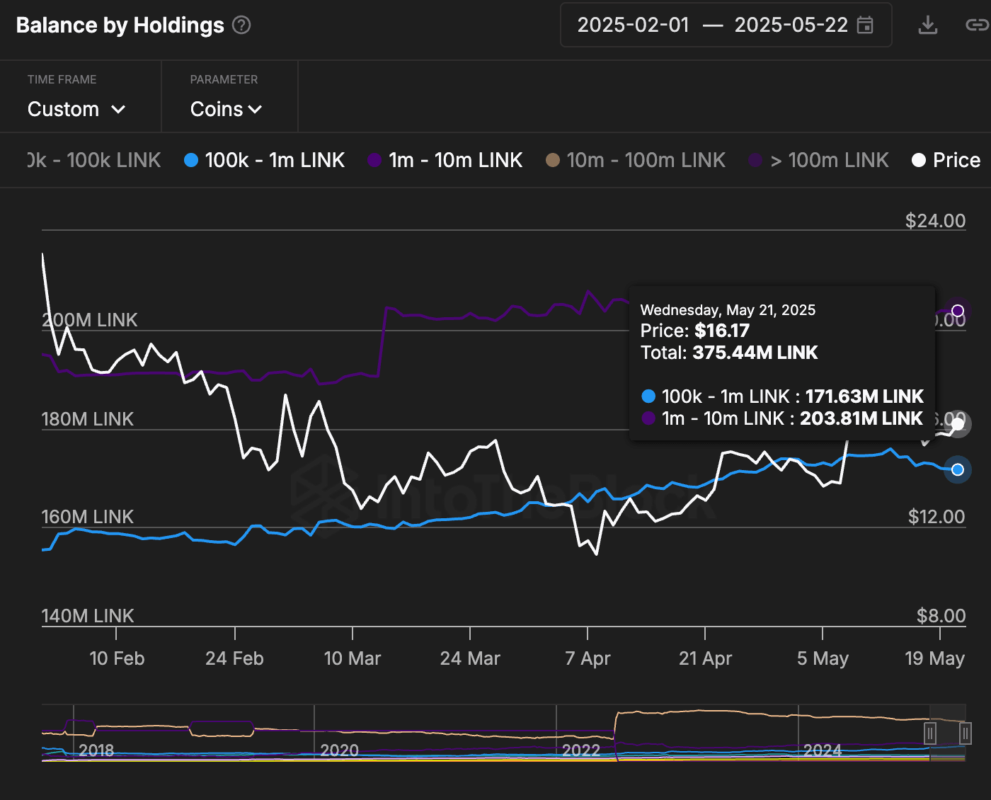 Chainlink (LINK) trades higher at $16.45, up by over 2% at the time of writing on Thursday, mirroring the wider cryptocurrency market recovery, with Bitcoin hitting a new all-time high. On-chain data reveals rising support from whales, reinforcing the bullish sentiment. The technical outlook signals a potential inverted head and shoulders pattern breakout in LINK, adding further upside potential.