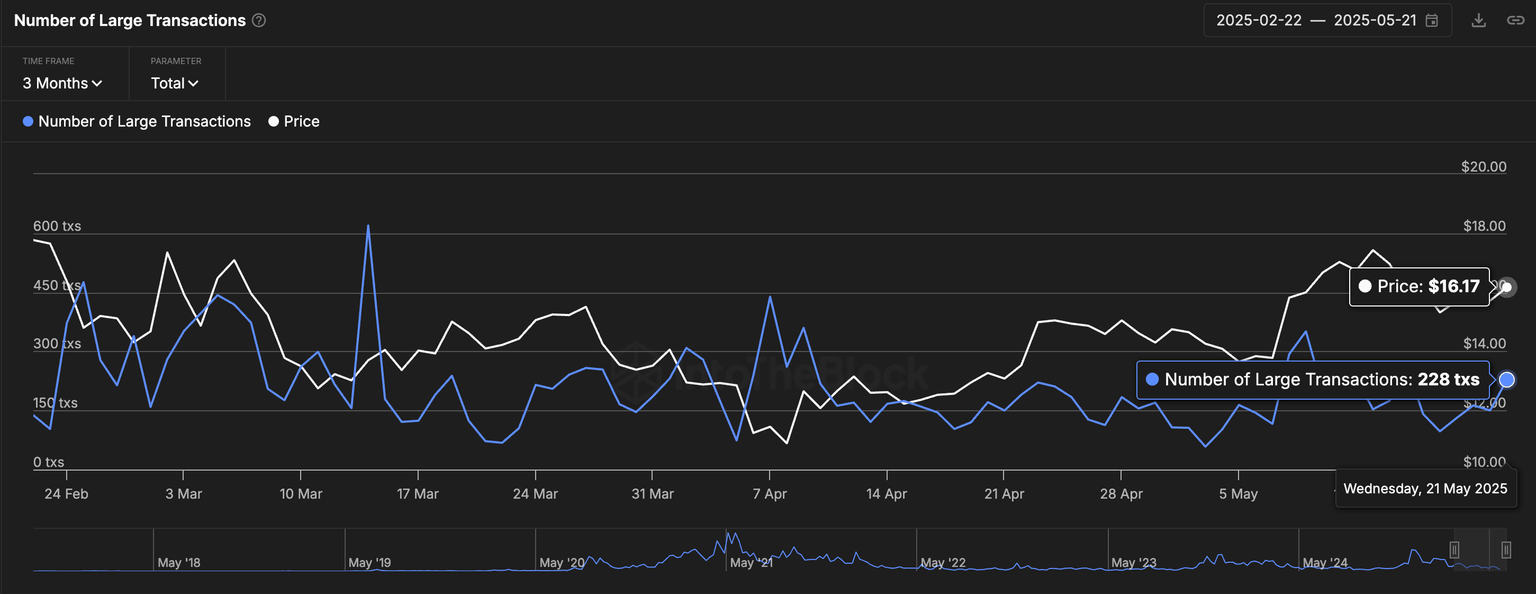 Since May 17, the number of large transactions has increased to 228 from 97, a 135% increase. Thus, the increasing whale activity and holding support the bullish outlook on Chainlink.