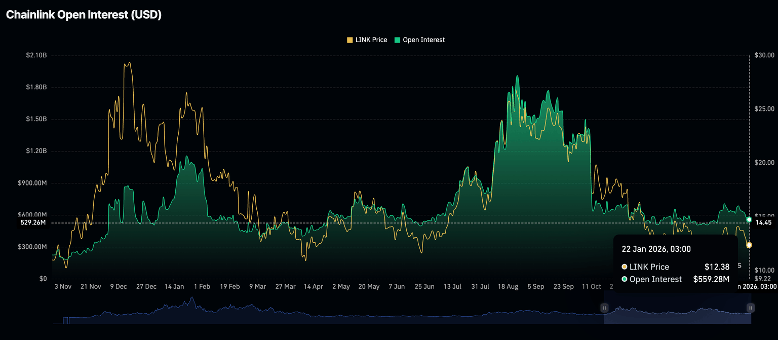 Chainlink’s derivatives market has similarly experienced significant drawdowns, as futures Open Interest (OI) has declined to $559 million on Thursday, from $566 million the previous day and $708 million on January 6.