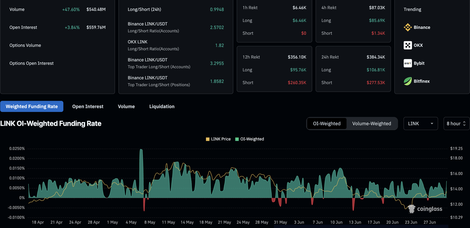 Chainlink derivatives. Source: Coinglass
