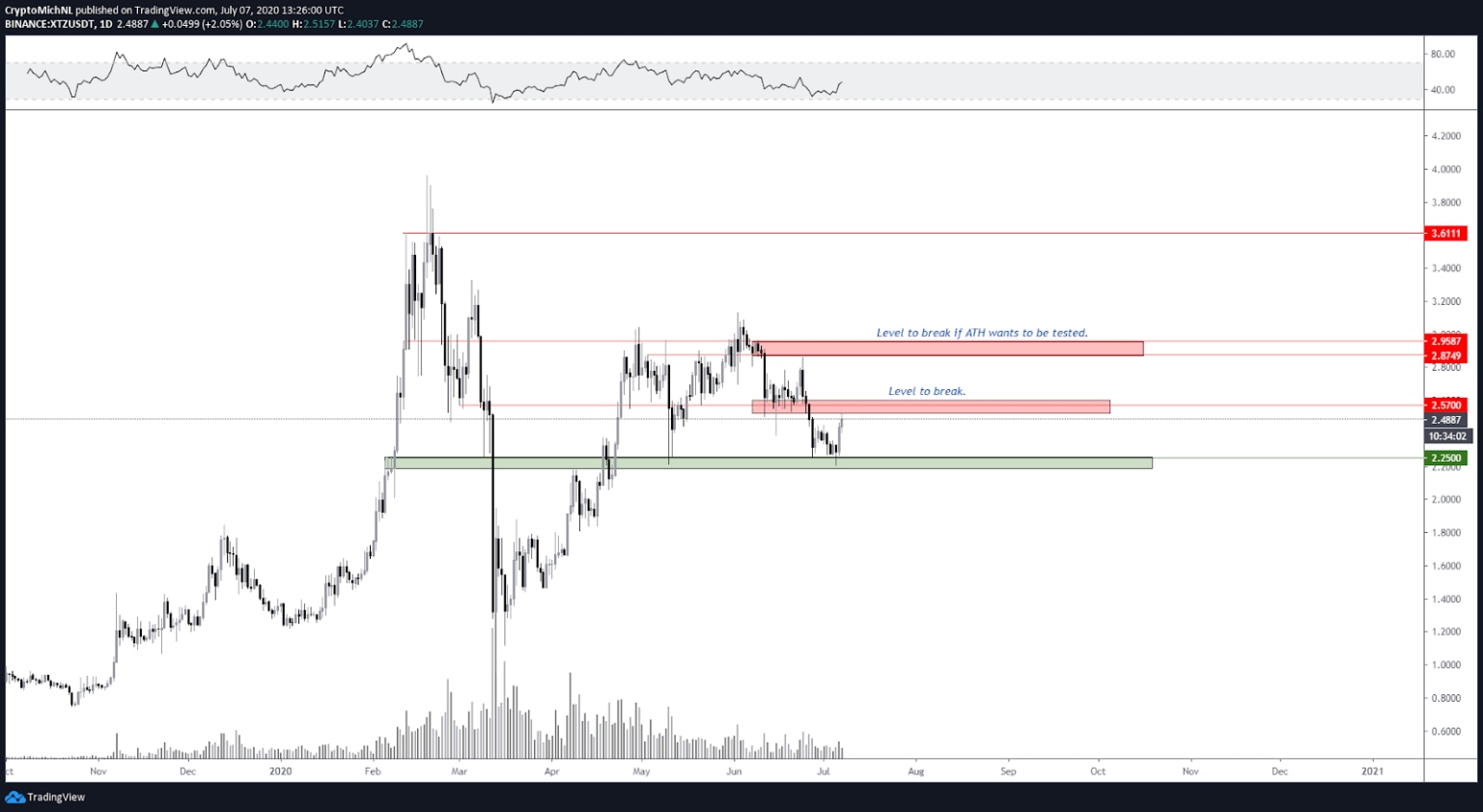 If the price level of $2.55-2.60 is broken, a continuation of $2.90-3.00 is on the table. As the chart shows, this is the last significant resistance before the all-time high can be tested for XTZ/USD. The key support for the price of Tezos is $2.15-2.25, which will likely see the rally continue if this level holds.