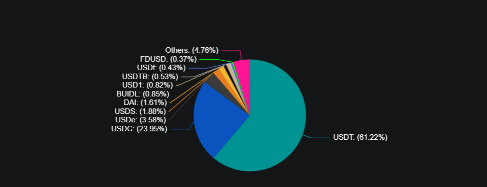 Currently, over 99% of stablecoins are tied to the US Dollar. Crypto intelligence tracker DeFiLlama data shows Tether’s USDT, which is tied to the US Dollar, holds a 61.22% market share.