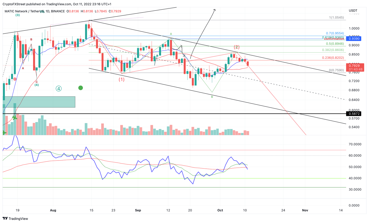 MATIC price fails to break through the upper boundary of the trend channel twice. The rejection occurred at a crucial bearish level on the Relative Strength Index after climbing back from oversold territory. Invalidation of the bearish thesis is a breach above $0.86.