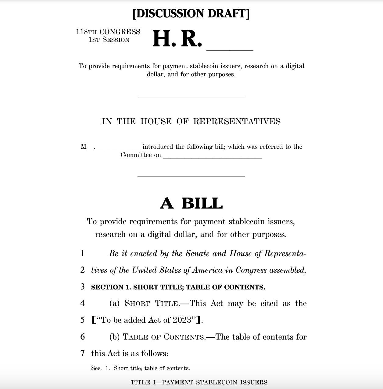 Just days before the upcoming hearing, a draft bill providing a framework for stablecoins in the United States was published in the House of Representatives document repository.