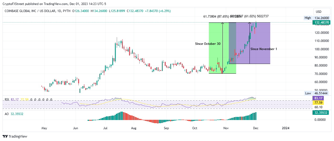 The COIN chart on TradingView corroborates this outlook, showing a steep climb in COIN’s share price in Q4. Specifically, it shows an 87% value surge since October 30 and a 61% rally since November 1.
