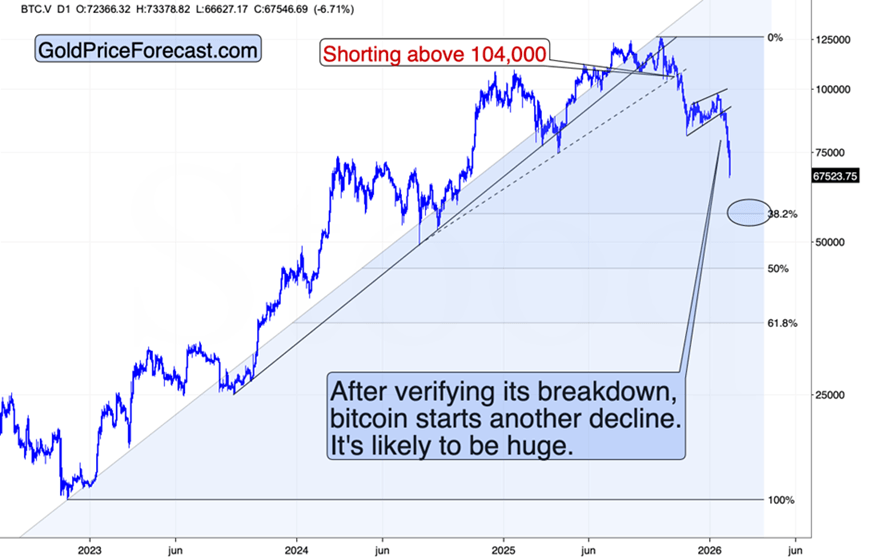 The good news is that bitcoin has more room to decline and our profits will most likely increase further. The next support is just below $60k, but bitcoin could decline briefly all the way to $50k (round number, previous low)
