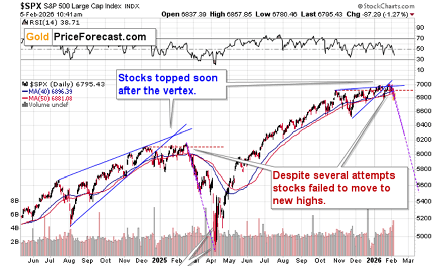 This is important. While we don’t have much data to confirm this, so far silver’s and miners’ performance is strongly linked to that of the stock market.