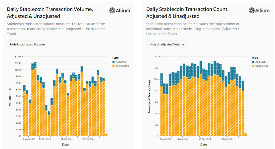 Visa collaborated with Allium Labs to develop an adjusted stablecoin transaction metric for the dashboard, which was announced in late April.