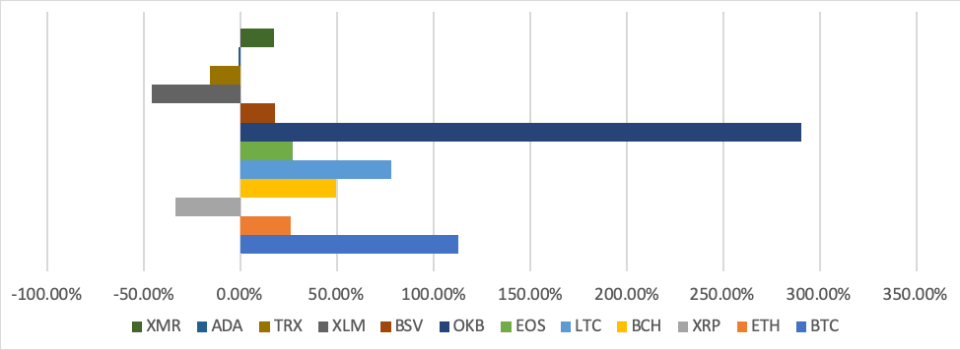 Figure 1: Major Crypto YTD Performance as of 19/11/2019 (Source: OKEx; Tradingview)