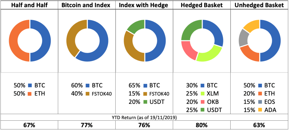Despite the recent price corrections, bitcoin is still able to maintain its 112% gain so far this year, and that has helped many BTC-based portfolios remain solidly in the green. However, we’ve found that the portfolio contains only BTC and ETH has been underperformed with portfolios that have both BTC and mid-cap altcoins exposure (Half and Half vs. Bitcoin and Index).