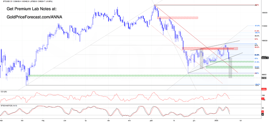 On top of that, Tuesday also closed below the lower border of the black rising wedge, which increases the risk of deeper downside - especially if bulls fail to reclaim the wedge quickly (in other words, if they don’t invalidate yesterday’s breakdown).