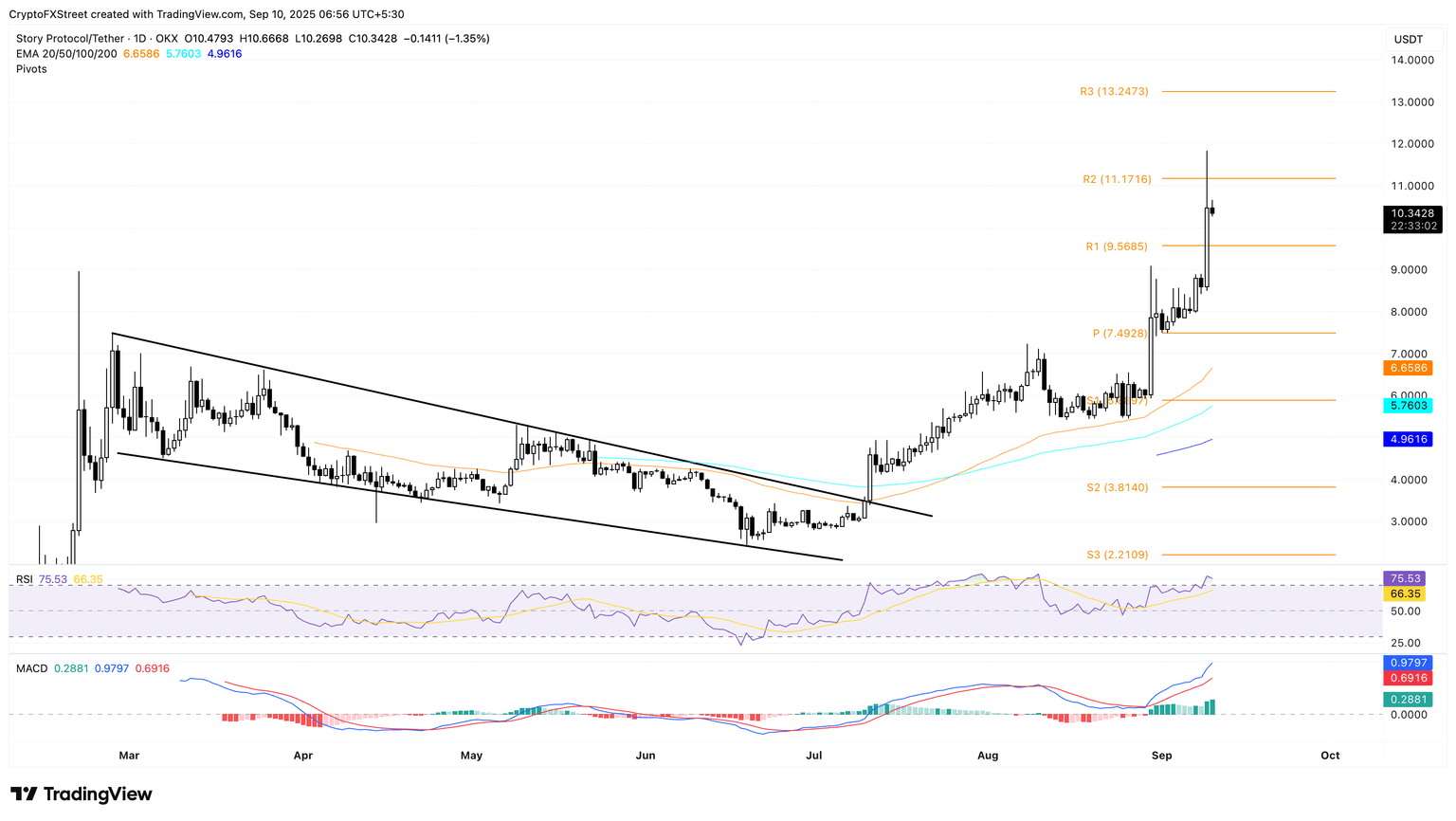 Still, the intraday pullback after retracing from its all-time high of $11.83 on the previous day signals overhead pressure due to profit-booking. If the pullback gains traction, the IP token could retest the R1 pivot level, which has now turned into a level of support at $9.56.