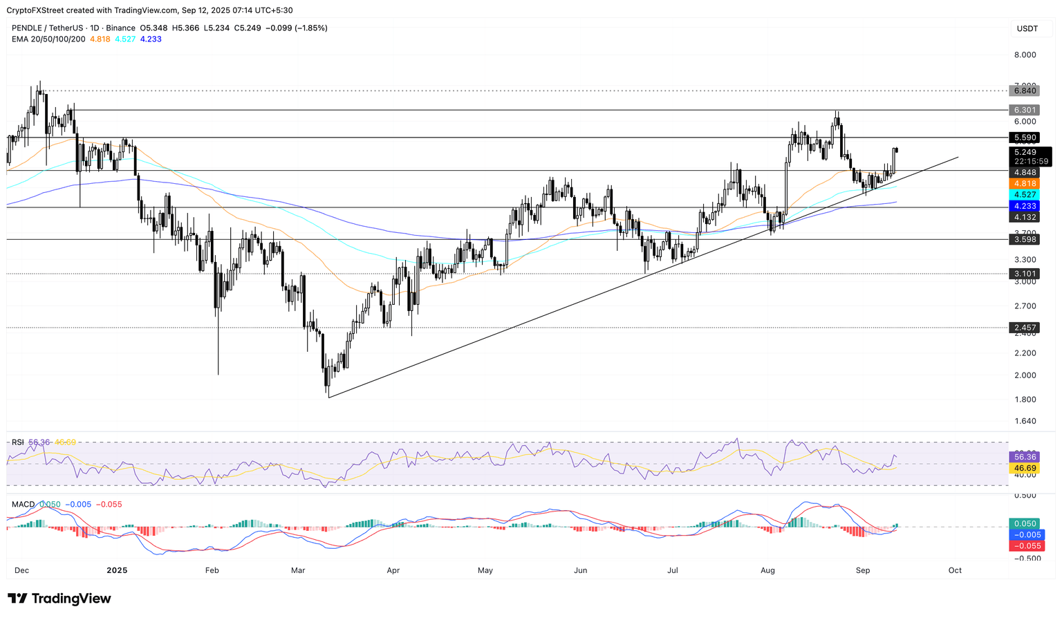 Pendle edges lower by nearly 2% at the time of writing on Friday, following an 11% gain on Thursday, which extended the reversal from a support trendline on the daily chart. The uptrend targets the $5.59 level, last tested on August 26.