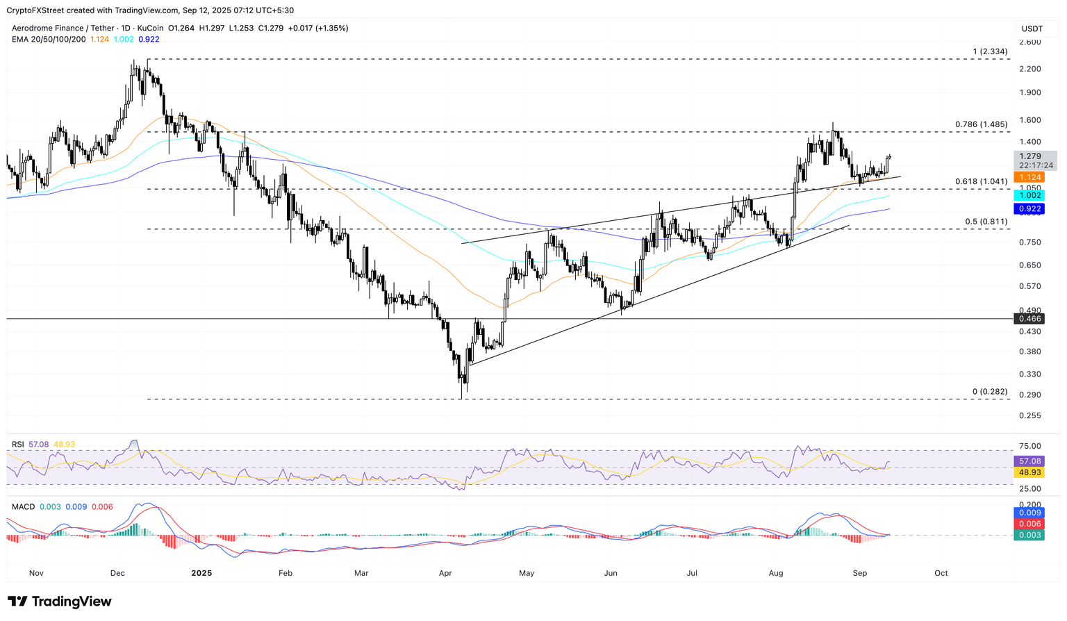 - Aerodrome Finance bounces off a support trendline, with bulls targeting further growth.